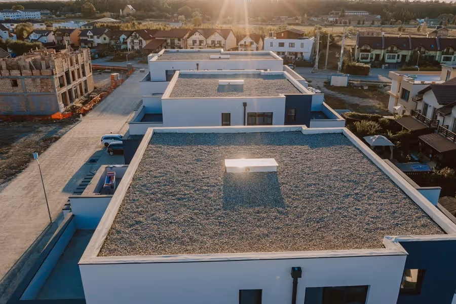 A flat roof is designed with a gentle slope — usually between 1/4 inch to 1/2 inch per foot — to direct water toward drainage systems while maintaining a nearly level surface. Unlike steeply pitched roofs that shed water quickly, flat roofs are built to manage slower drainage and are commonly found on modern homes, commercial properties, and industrial buildings due to their affordability and flexible design options.
